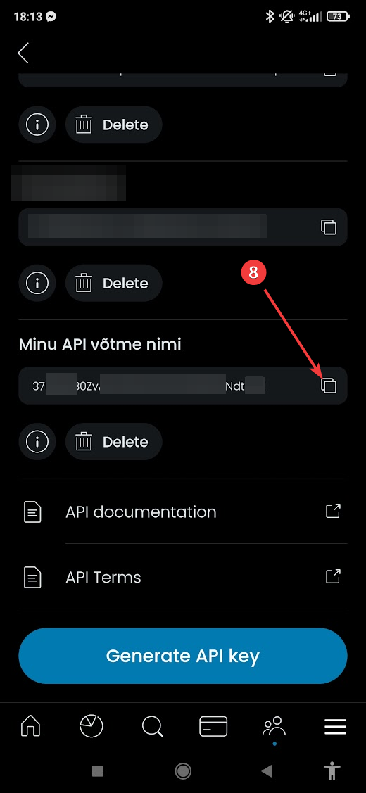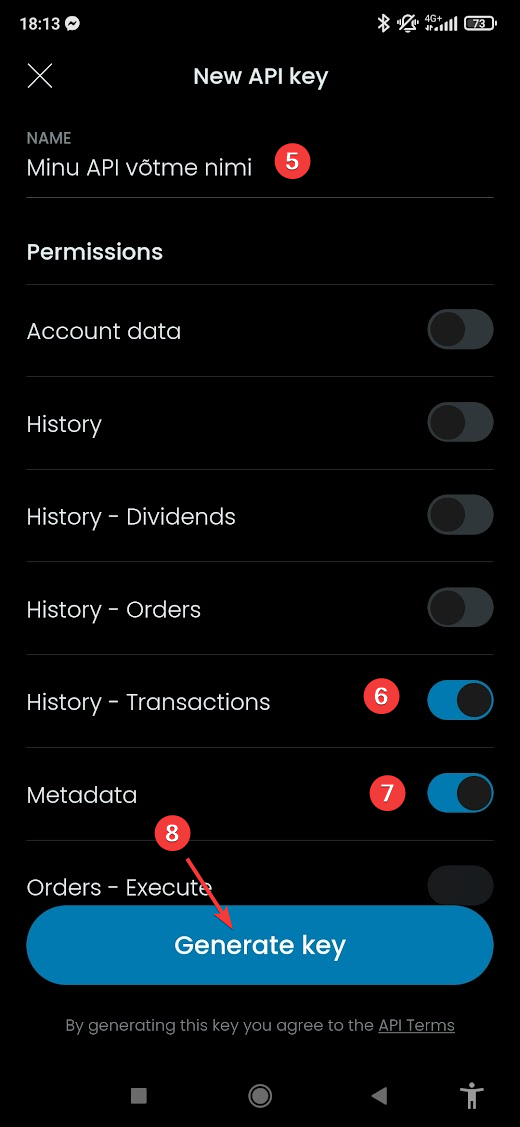 Sisesta Trading 212 API võti, algus- ja lõpukuupäev, seejärel vajuta nuppu. Kõrvale ilmuvad kanded, mida tuleb kanda EMTA tuludeklaratsioonile. Sellel API võtmel peavad olema järgnevad load: "Metadata" ja "History - Transactions".